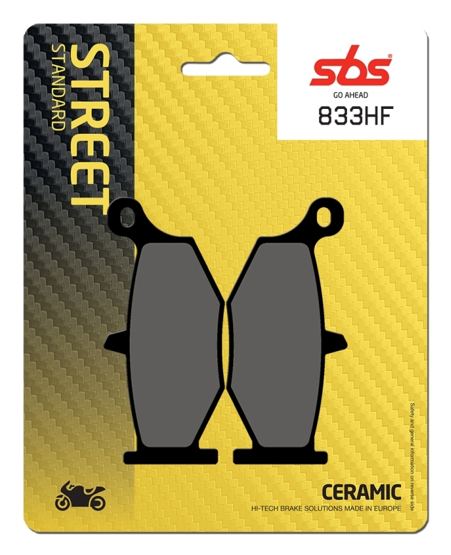 Pastillas freno Sbs 833-HF. Las pastillas de freno Sbs 833-HF con compuesto HF cerámico ofrecen una frenada estable, indistintamente si el freno es delantero o trasero. Se caracterizan por su alto nivel de confort y larga duración. También ofrecen una óptima protección al disco de freno sobre cualquier condición climática. Precio por juego. Adjuntamos un PDF con el catalogo SBS para más información sobre compatibilidades con cada modelo de moto.