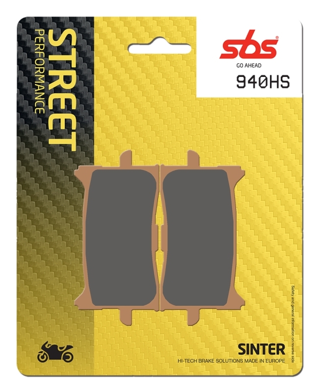 Pastillas freno Sbs 940-HS. Las pastillas de freno Sbs 940-HS (compuesto HS sinterizado), se caracterizan por ofrecer una frenada potente, con muy buena estabilidad térmica y de excelente tacto. Desarrollada especialmente uso en motos deportivas y de alta cilindrada, las pastillas de freno Sbs HS protege el disco y además su rendimiento es estable en condiciones tanto secas como húmedas. Precio por juego. Adjuntamos un PDF con el catalogo SBS para más información sobre compatibilidades con cada modelo de moto.