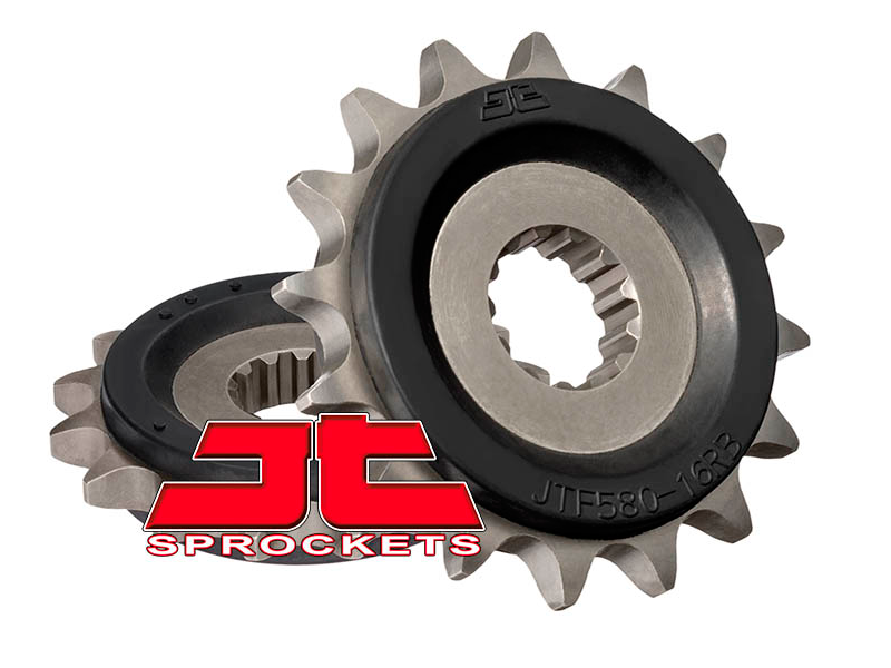 Piñon JT Sprockets con goma JTF580 16RB. El piñón JT Sprockets JTF580 16 posee la mejor calidad y durabilidad disponible en el mercado y siempre con un precio excelente. Fabricado en aleación de acero cromado SCM415, el piñón JT Sprockets JTF580 16 está realizado mediante computadora CNC y equipo de control de corte de metal, que garantizan un acabado inmejorable. Los piñones y coronas Jt Sprockets para kits de transmisión de moto, son utilizados por fabricantes como Honda, Yamaha, Kawasaki, etc en sus equipaciones de serie.
