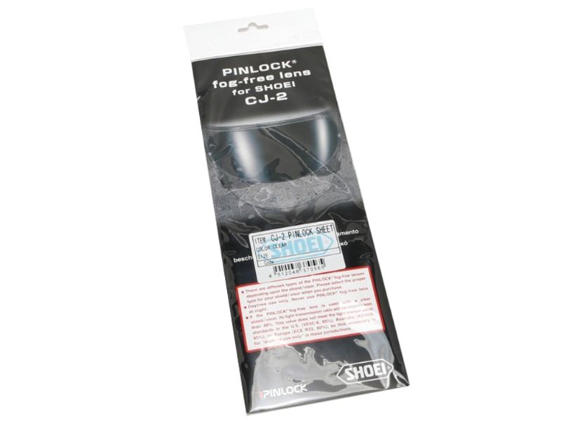 Accesorio cascos Shoei / Pinlock Shoei Anti-Vaho EVO CJ-2 Clear. El anti-vaho Pinlock CJ-2 garantiza una visión clara en cualquier condición climática Se coloca muy fácil y puede ser usado todo el año. El anti-vaho es adaptable sólo a la pantalla CJ-2 del casco Shoei J-Cruise.