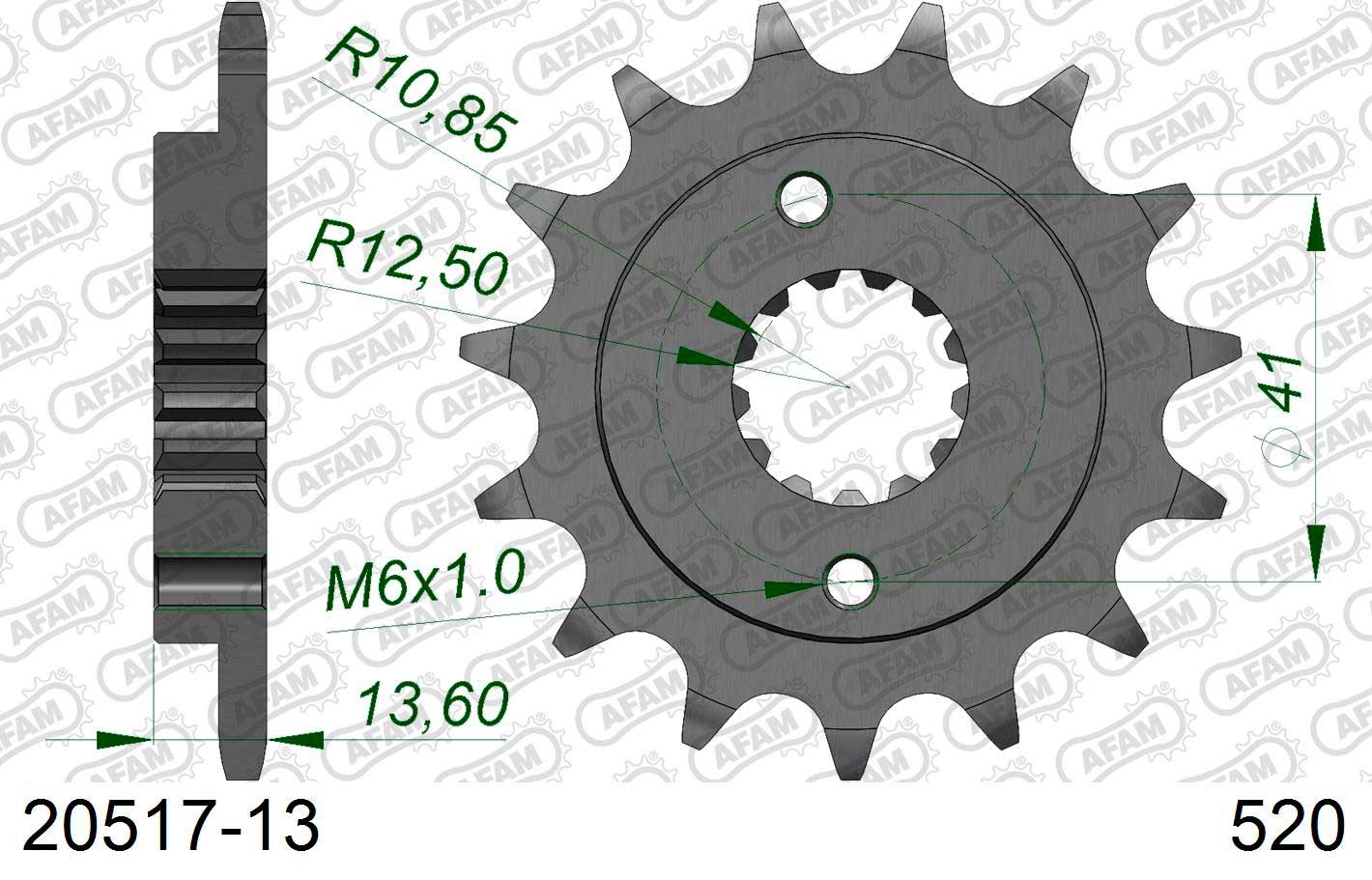 Piñon AFAM 20517-13. Los piñones de transmisión AFAM, reconocidos por su innovación y alto rendimiento, son la elección predilecta de motociclistas por su durabilidad y resistencia. Estos piñones, precisamente elaborados con materiales de primera calidad, aseguran una transferencia de potencia eficaz y suave, optimizando el rendimiento de tu moto.