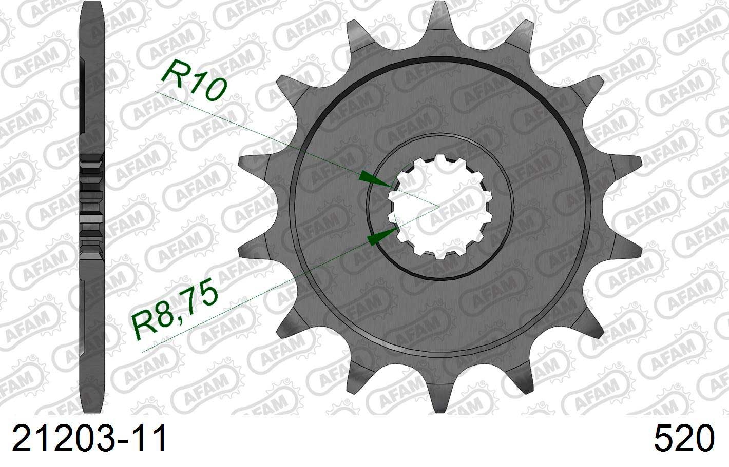 Piñon AFAM 21203-11. Los piñones de transmisión AFAM, reconocidos por su innovación y alto rendimiento, son la elección predilecta de motociclistas por su durabilidad y resistencia. Estos piñones, precisamente elaborados con materiales de primera calidad, aseguran una transferencia de potencia eficaz y suave, optimizando el rendimiento de tu moto.