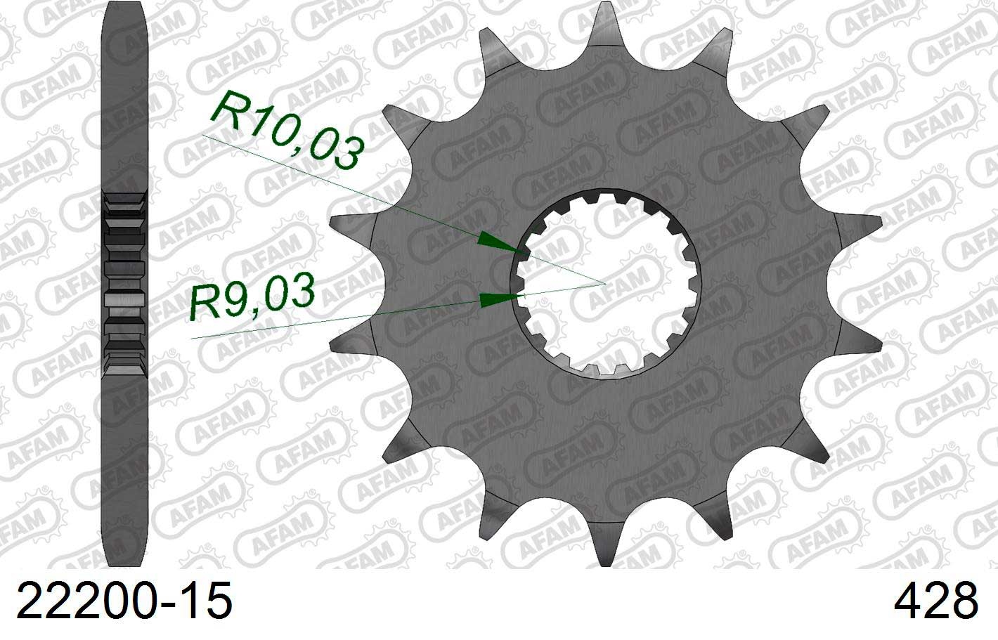 Piñon AFAM 22200-15. Los piñones de transmisión AFAM, reconocidos por su innovación y alto rendimiento, son la elección predilecta de motociclistas por su durabilidad y resistencia. Estos piñones, precisamente elaborados con materiales de primera calidad, aseguran una transferencia de potencia eficaz y suave, optimizando el rendimiento de tu moto.