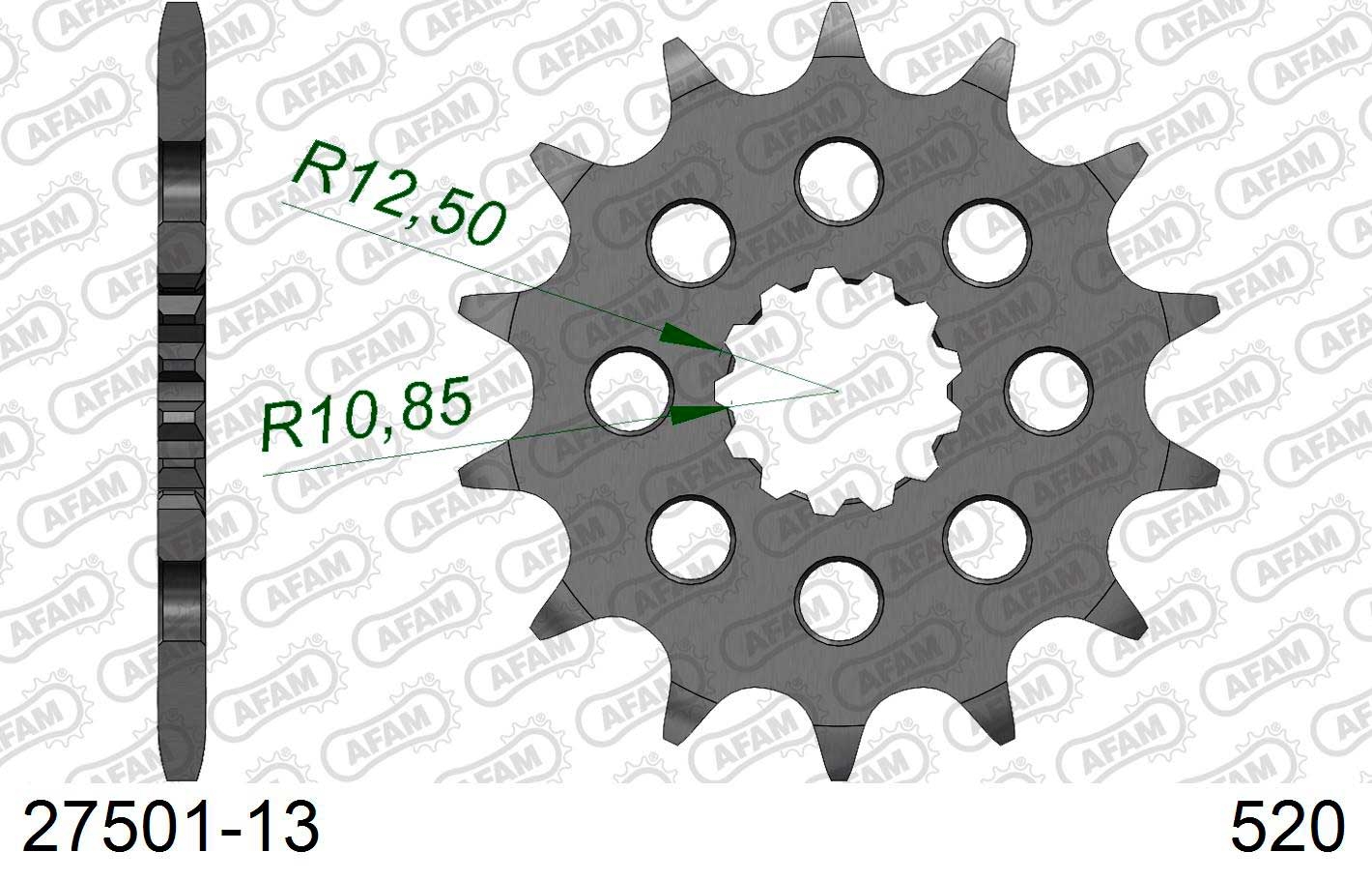 Piñon AFAM 27501-13. Los piñones de transmisión AFAM, reconocidos por su innovación y alto rendimiento, son la elección predilecta de motociclistas por su durabilidad y resistencia. Estos piñones, precisamente elaborados con materiales de primera calidad, aseguran una transferencia de potencia eficaz y suave, optimizando el rendimiento de tu moto.
