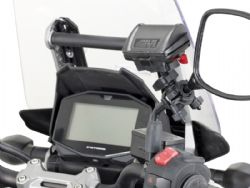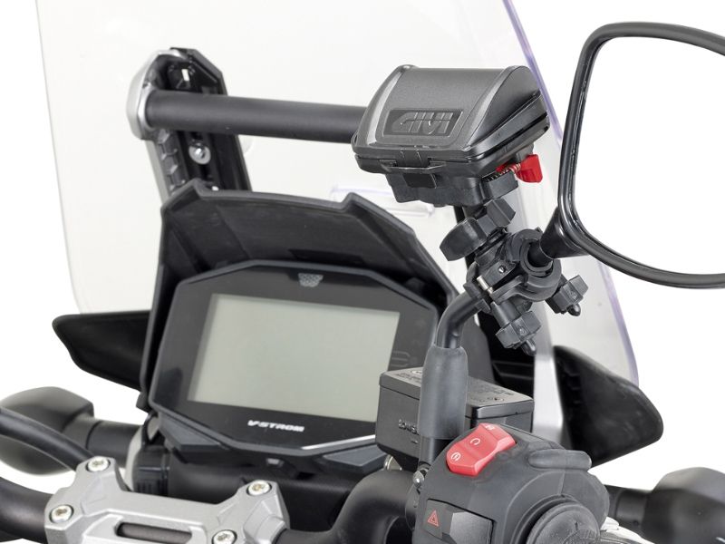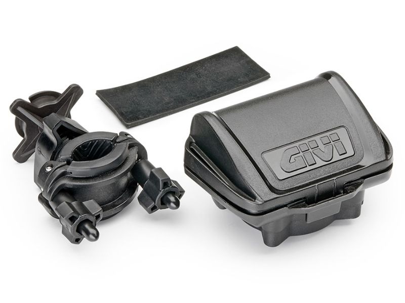 Porta tele pago Givi S604. Nuevo soporte universal Givi S604 para alojar un dispositivo de pago de peajes TELEPASS para autopistas europeas. Dotado de un kit universal para la fijación en manillares con tubos de diámetro comprendido entre 8 y 35mm y con la posibilidad de fijarse también en secciones no perfectamente redondas como travesaños y espejos retrovisores. Fabricado con tecnopolímeros reforzados y acero inoxidable. Nuevo formato con medidas de 66 x 48 x 28 mm. No se incluye el dispositivo de pago mostrado en las imágenes.