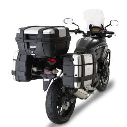 Givi PL1121. Portamaletas lateral específico para maletas Monokey®. Para el motaje sin el adaptador posterior 1121FZ, combinar con el 1121KIT. Para garantizar la mejor visibilidad de los indicadores posteriores con las maletas montadas, es necesario desplazarlos adquiriendo el kit IN1121KIT; compatible sólo para TRK33N, TRK46N, E21, E22.