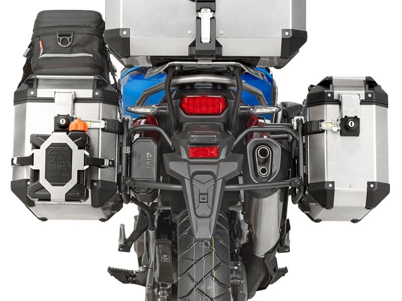 Portamaletas lateral Givi PL1161CAM Honda CRF1000L Africa Twin Adventure Sports 2018. Nuevo soporte de maleta Givi PL1161CAM diseñado específicamente para la CRF1000L Africa Twin Adventure Sports y que permite la fijación de las maletas laterales de aluminio Givi Trekker Outback con sistema Monokey Cam-Side. El soporte Givi PL1161CAM está diseñado con las últimas tecnologías y tubo de 18 mm de diámetro para ofrecer la máxima solidez y evitar las vibraciones a altas velocidades.