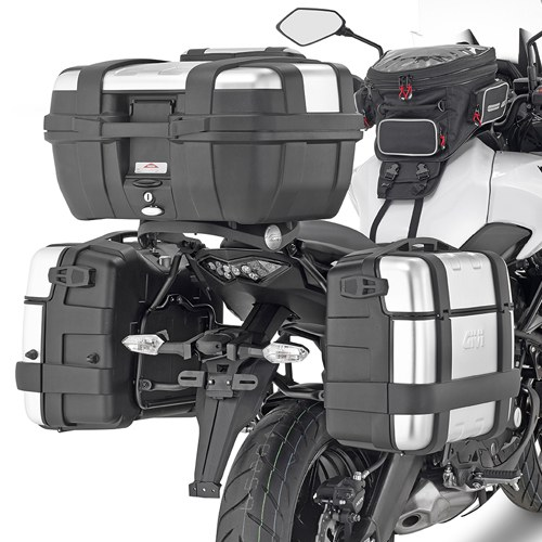 Soporte portamaletas lateral Givi PL4114 Kawasaki Versys 650 2015. Nuevo portamaletas lateral Givi PL4114 específico para la Kawasaki Versys 650 2015 y que permite la fijación de las maletas laterales Givi Monokey® (excluidas las maletas Givi V35 y Outback). Para el montaje sin el adaptador posterior (soporte maleta) Givi SR4110 es necesario combinar con el kit Givi 4114KIT. Con la finalidad de garantizar una óptima visibilidad de los intermitentes traseros una vez montadas las maletas, es necesario desplazarlos adquiriendo por separado el kit Givi IN4114KIT.