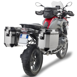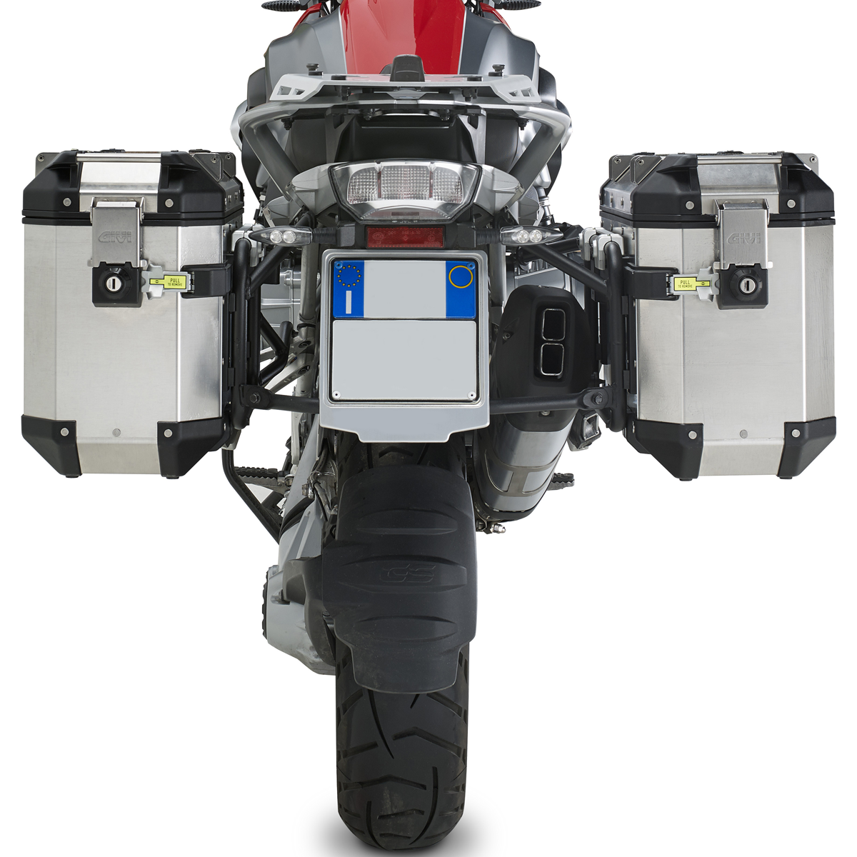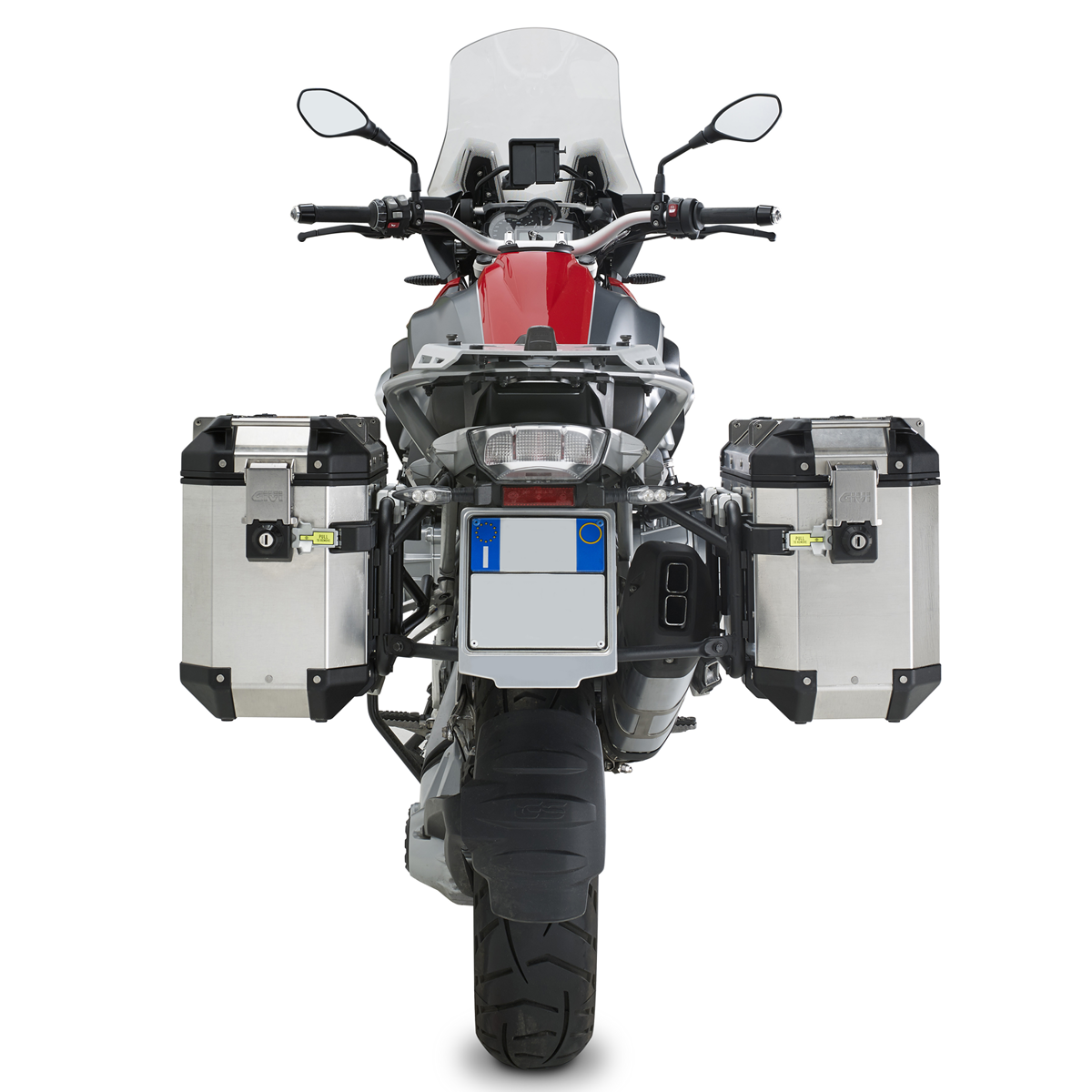 Soporte maleta portamaletas lateral Givi PL5108CAM Bmw R 1200 GS 2013/2017. Nuevo soporte de maleta Givi PL5108CAM diseñado específicamente para la nueva Bmw R 1200 GS LC y que permite la fijación de las maletas laterales de aluminio Givi Trekker Outback con sistema Monokey Cam-Side. El soporte Givi PL5108CAM está diseñado con las últimas tecnologías y tubo de 18 mm de diámetro para ofrecer la máxima solidez y evitar las vibraciones a altas velocidades. Para montar el portamaletas PL5108CAM es necesario desplazar los intermitentes.