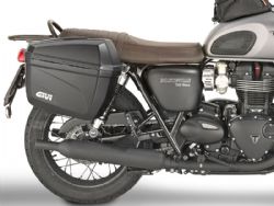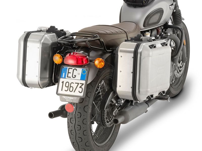 Soporte portamaletas lateral Givi PL6410 Triumph Bonneville T120 2016. Nuevo portamaletas lateral Givi PL6410 diseñado para la Bonneville T120 y que permite la fijación en las maletas Givi Monokey. Construido con tubos de 18 mm, es estremadamente resistente a las vibraciones y golpes.