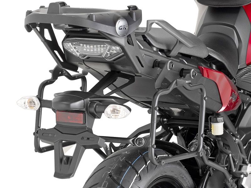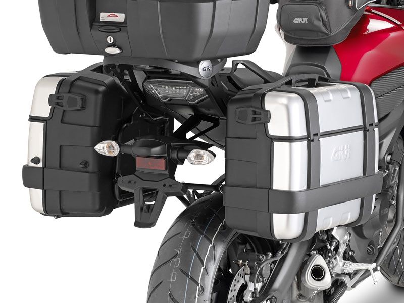 Soporte maleta portamaletas lateral Givi PLR2122 Yamaha MT-09 Tracer 2015. Nuevo soporte de maleta Givi PLR2122 diseñado específicamente para la Tracer MT-09 Tracer y que permite la fijación rápida de las maletas laterales Givi con sistema Monokey. El soporte de maleta Givi PLR2122 está diseñado con las últimas tecnologías y tubo de 18 mm de diámetro para ofrecer la máxima solidez y evitar las vibraciones a altas velocidades. Se monta en presencia del portapaquetes original.