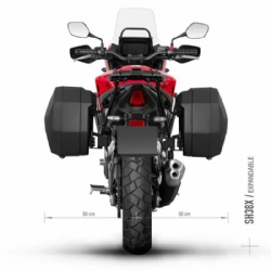 Este portamaletas lateral permite montar maletas laterales Shad compatibles con 3P (por ejemplo, las series SH35/SH36/SH38 y equivalentes). Es la base estructural sobre la que se fijan las maletas, garantizando resistencia y alineación correctas.