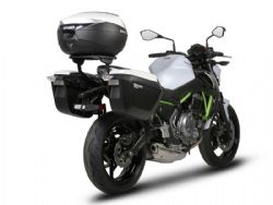 Soporte Maleta Lateral Shad 3P System K0Z667IF Kawasaki Z650 2017. La fijación 3P System es una de las innovaciones más importantes de Shad. Se caracteriza por su diseño integrado en la moto, y su ligereza. Gracias a su menor peso apenas se modifica el centro de gravedad de la moto, lo que mejora la seguridad en la conducción. El montaje se realiza rápidamente y de manera sencilla.