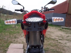 Este producto no solo simplifica el aspecto de tu moto, sino que también asegura que se mantenga alineado con las normativas de tráfico, gracias a su diseño inteligente y funcional. Es la elección perfecta para quienes buscan una solución elegante y práctica para su portamatrícula, asegurando que su moto se destaque tanto en rendimiento como en estilo.