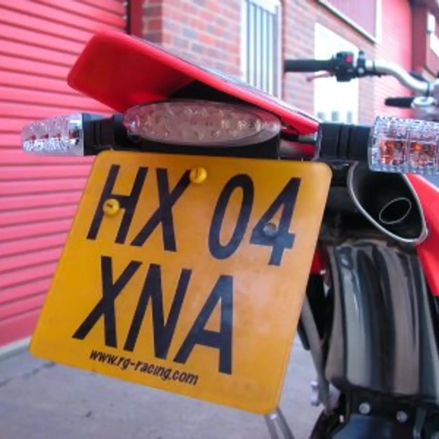 El portamatrícula de para moto RG Racing viene completamente equipado con todos los orificios necesarios pre-taladrados, incluyendo todos los accesorios y fijaciones que podrías necesitar para una instalación sin complicaciones. Además, donde sea necesario, incluye una luz de matrícula integrada y discreta que mantiene la funcionalidad completa sin afectar el diseño elegante y limpio.