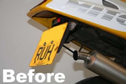 Este producto no solo simplifica el aspecto de tu moto, sino que también asegura que se mantenga alineado con las normativas de tráfico, gracias a su diseño inteligente y funcional. Es la elección perfecta para quienes buscan una solución elegante y práctica para su portamatrícula, asegurando que su moto se destaque tanto en rendimiento como en estilo.