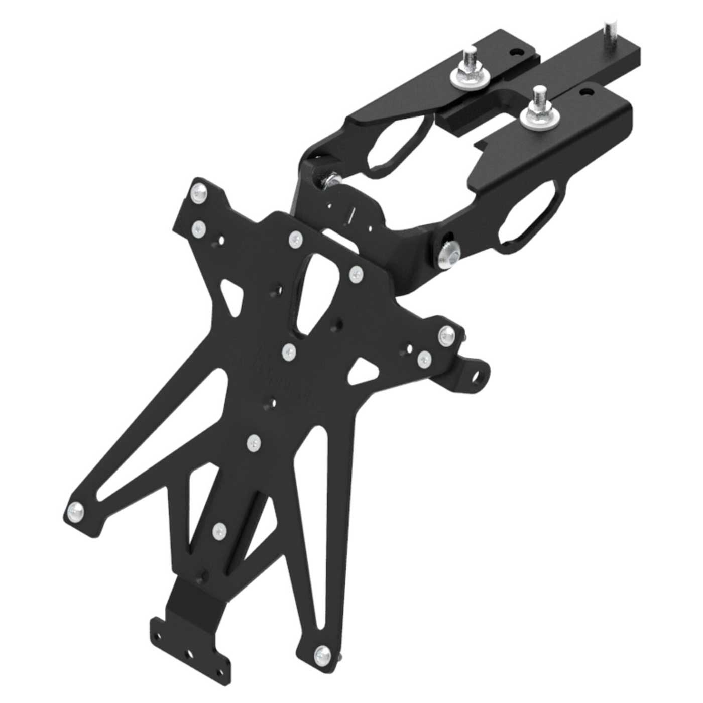 Gracias a su sistema regulable, permite ajustar la inclinación de la matrícula para lograr una línea más limpia y deportiva en la parte trasera de la moto. Además, incluye soportes específicos que facilitan el montaje tanto de intermitentes originales como de modelos universales aftermarket.