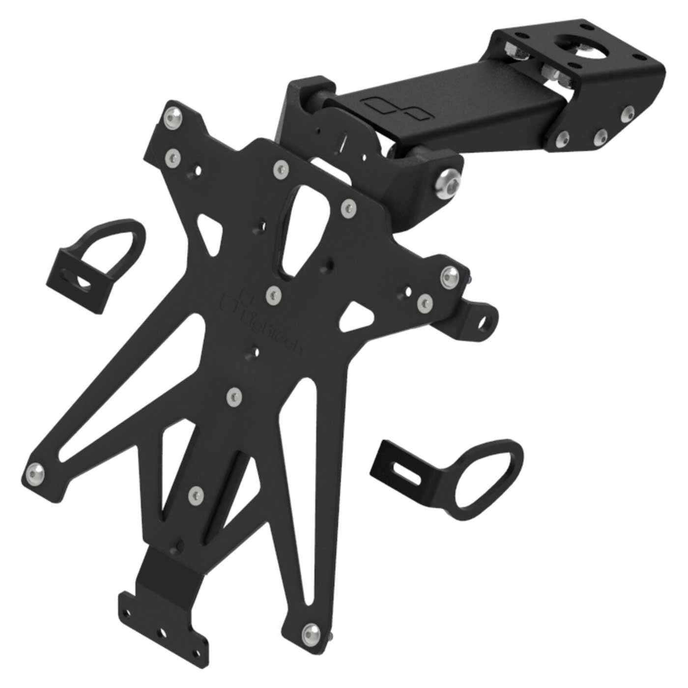 Gracias a su sistema regulable, permite ajustar la inclinación de la matrícula para lograr una línea más limpia y deportiva en la parte trasera de la moto. Además, incluye soportes específicos que facilitan el montaje tanto de intermitentes originales como de modelos universales aftermarket.