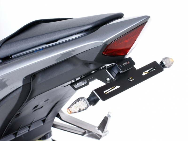 Portamatrícula Puig 4732N. El portamatrícula Puig 4732N está realizado en acero inoxidable muy resistente, con acabados de gran calidad y terminación en anodizado de color negro. Diseñado específicamente para cada modelo de moto, el portamatrícula Puig 4732N ofrece un look agresivo además de una excelente relación calidad-precio. Con este portamatrícula no se entregan conectores originales para conectar la luz de la matrícula y no está diseñado para instalar los intermitentes originales.