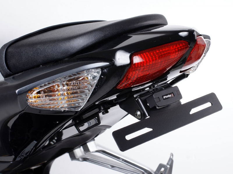 Portamatrícula Puig 4735N. El portamatrícula Puig 4735N está realizado en acero inoxidable muy resistente, con acabados de gran calidad y terminación en anodizado de color negro. Diseñado específicamente para cada modelo de moto, el portamatrícula Puig 4735N ofrece un look agresivo además de una excelente relación calidad-precio. Con este portamatrícula no se entregan conectores originales para conectar la luz de la matrícula y no está diseñado para instalar los intermitentes originales.
