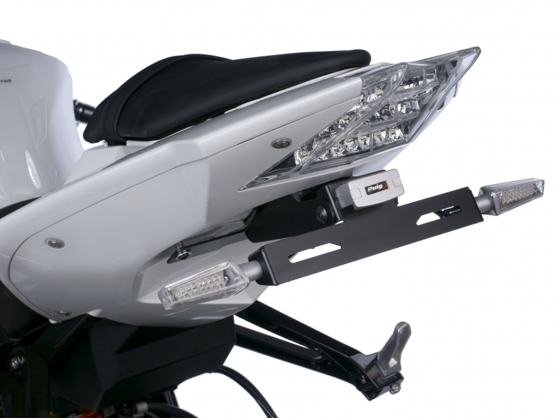 Portamatrícula Puig 5319N. El portamatrícula Puig 5319N está realizado en acero inoxidable muy resistente, con acabados de gran calidad y terminación en anodizado de color negro. Diseñado específicamente para cada modelo de moto, el portamatrícula Puig 5319N ofrece un look agresivo además de una excelente relación calidad-precio. Con este portamatrícula no se entregan conectores originales para conectar la luz de la matrícula y no está diseñado para instalar los intermitentes originales.