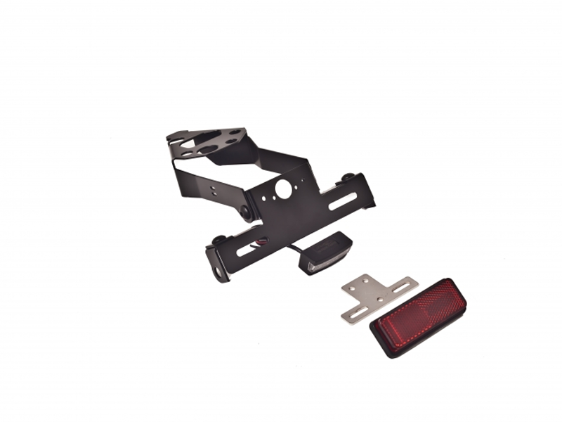 Portamatrícula Puig 6551N. El portamatrícula Puig 6551N está realizado en acero inoxidable muy resistente, con acabados de gran calidad y terminación en anodizado de color negro. Diseñado específicamente para cada modelo de moto, el portamatrícula Puig 6551N ofrece un look agresivo además de una excelente relación calidad-precio. Con este portamatrícula no se entregan conectores originales para conectar la luz de la matrícula y no está diseñado para instalar los intermitentes originales.