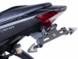 Portamatrícula Puig 7108N. El portamatrícula Puig 7108N está realizado en acero inoxidable muy resistente, con acabados de gran calidad y terminación en anodizado de color negro. Diseñado específicamente para cada modelo de moto, el portamatrícula Puig 7108N ofrece un look agresivo además de una excelente relación calidad-precio. Con este portamatrícula no se entregan conectores originales para conectar la luz de la matrícula y no está diseñado para instalar los intermitentes originales.