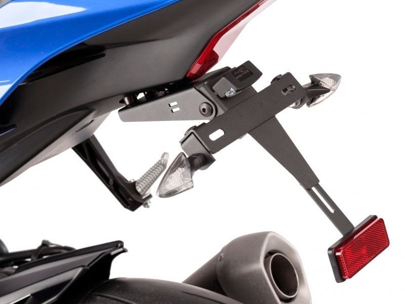 Portamatrícula Puig 7798N. El portamatrícula Puig 7798N está realizado en acero inoxidable muy resistente, con acabados de gran calidad y terminación en anodizado de color negro. Diseñado específicamente para cada modelo de moto, el portamatrícula Puig 7798N ofrece un look agresivo además de una excelente relación calidad-precio. Con este portamatrícula no se entregan conectores originales para conectar la luz de la matrícula y no está diseñado para instalar los intermitentes originales.