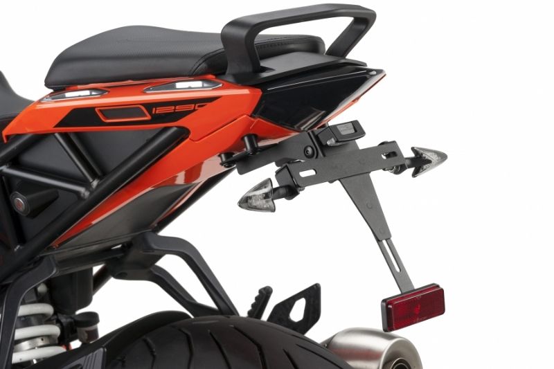 Portamatrícula Puig 8728N. El portamatrícula Puig 8728N está realizado en acero inoxidable muy resistente, con acabados de gran calidad y terminación en anodizado de color negro. Diseñado específicamente para cada modelo de moto, el portamatrícula Puig 8728N ofrece un look agresivo además de una excelente relación calidad-precio. Con este portamatrícula no se entregan conectores originales para conectar la luz de la matrícula y no está diseñado para instalar los intermitentes originales.