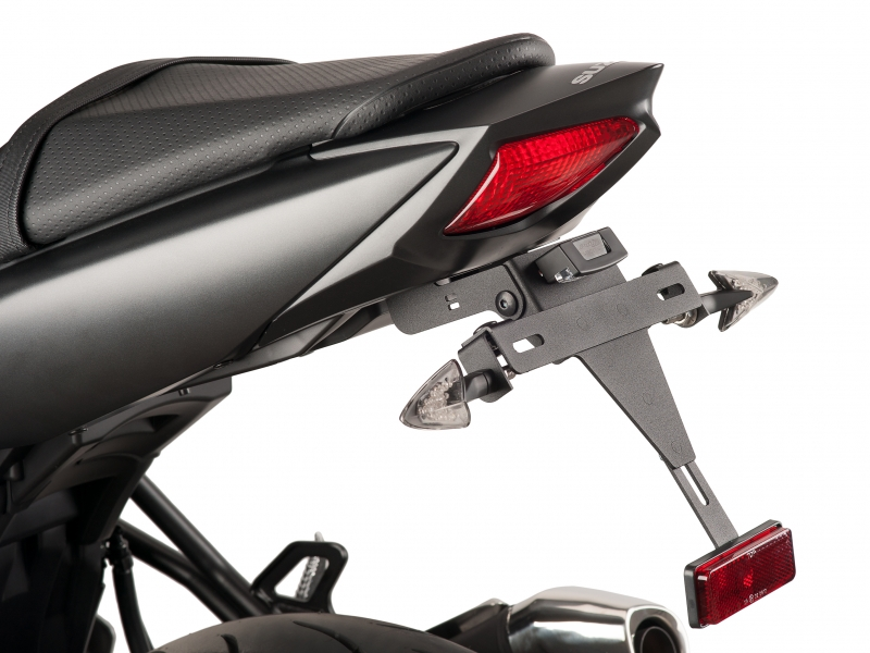Portamatrícula Puig 8729N. El portamatrícula Puig 8729N está realizado en acero inoxidable muy resistente, con acabados de gran calidad y terminación en anodizado de color negro. Diseñado específicamente para cada modelo de moto, el portamatrícula Puig 8729N ofrece un look agresivo además de una excelente relación calidad-precio. Con este portamatrícula no se entregan conectores originales para conectar la luz de la matrícula y no está diseñado para instalar los intermitentes originales.