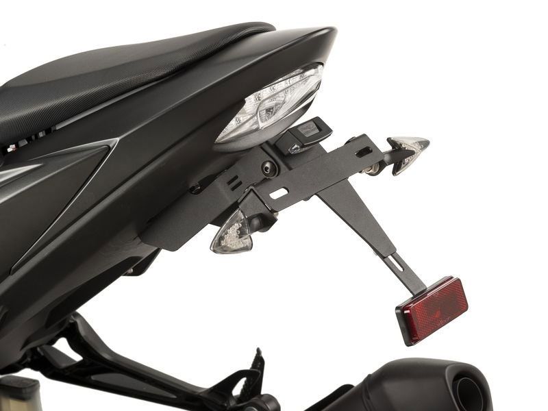 Portamatrícula Puig 9422N Suzuki GSX-S750 2017. El portamatrícula Puig 9422N está realizado en acero inoxidable muy resistente, con acabados de gran calidad y terminación en anodizado de color negro. Diseñado específicamente para cada modelo de moto, el portamatrícula Puig 9422N ofrece un look agresivo además de una excelente relación calidad-precio. Con este portamatrícula no se entregan conectores originales para conectar la luz de la matrícula y no está diseñado para instalar los intermitentes originales. Homologación TUV y ABE91505.
