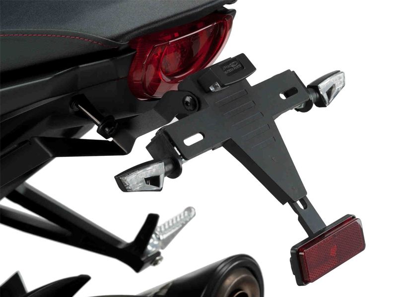 Portamatrícula Puig 9786N Honda CB1000R NEO SPORTS CAFE 2018. El portamatrícula Puig 9786N está realizado en acero inoxidable muy resistente, con acabados de gran calidad y terminación en anodizado de color negro. Diseñado específicamente para cada modelo de moto, el portamatrícula Puig 9786N ofrece un look agresivo además de una excelente relación calidad-precio. Con este portamatrícula no se entregan conectores originales para conectar la luz de la matrícula y no está diseñado para instalar los intermitentes originales.