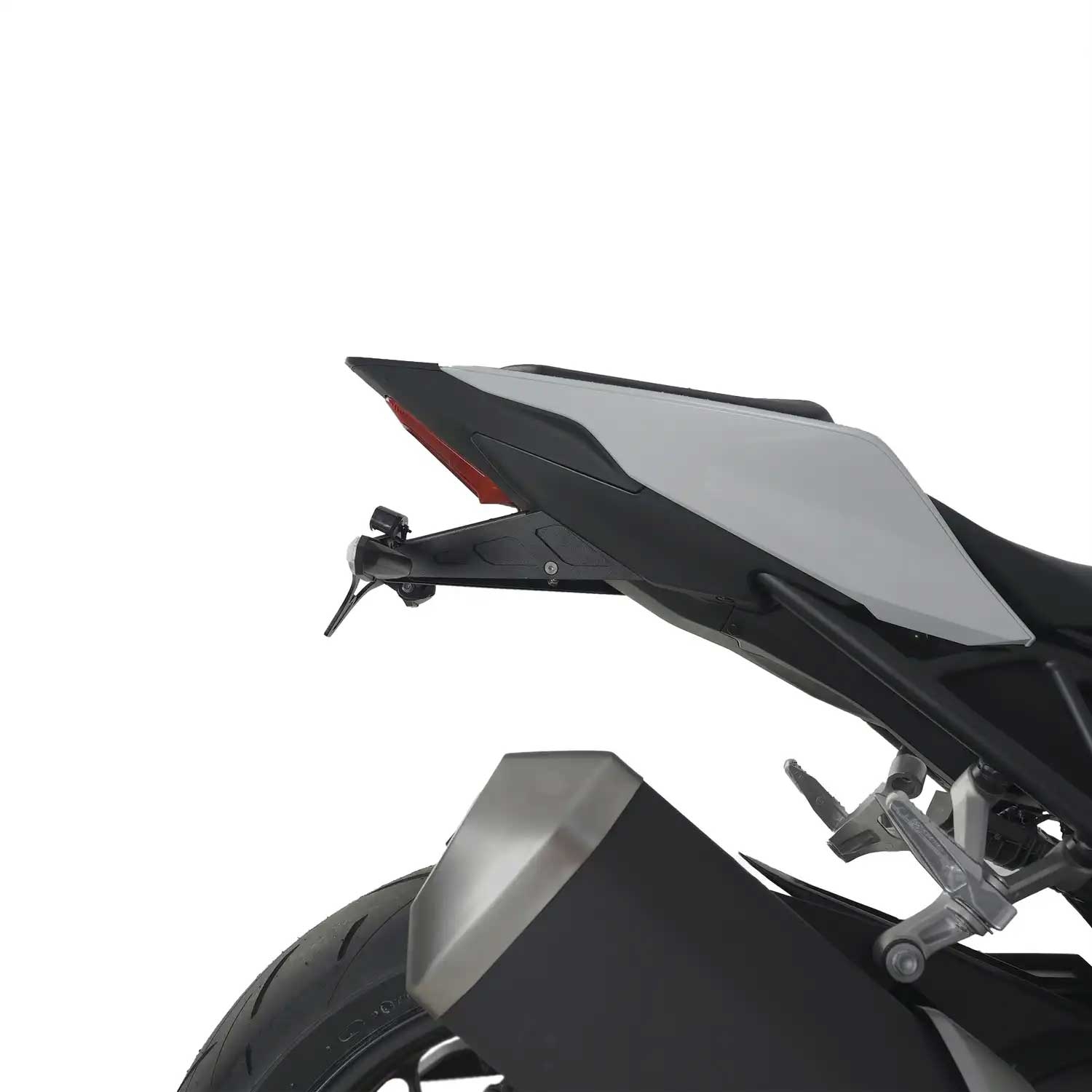 Este R&G Tail Tidy “limpia” la parte trasera de la moto, acercando la matrícula al colín y dejando a la vista el diseño real del subchasis. Es una de las primeras modificaciones estéticas recomendadas para quienes quieren que su moto luzca más racing, más ligera y mejor terminada desde cualquier ángulo.