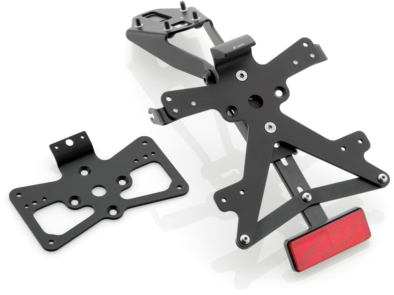 - Dimensiones: El kit comprende 2 soportes de matrícula diferentes (España e Italia 157x157mm y USA146x69.5mm), esto con la finalidad de hacerlo apto para las diferentes dimensiones de matrícula en circulación.