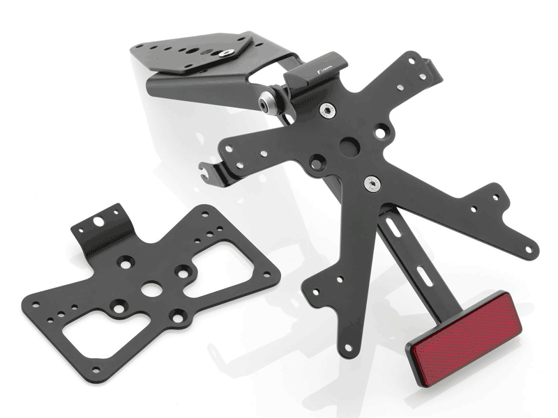 - Dimensiones: El kit comprende 2 soportes de matrícula diferentes (España e Italia 157x157mm y USA146x69.5mm), esto con la finalidad de hacerlo apto para las diferentes dimensiones de matrícula en circulación.