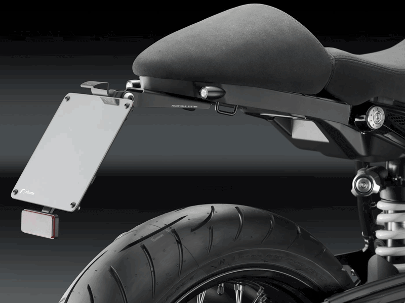 - Altura regulable: la matrícula puede ser desplazada sobre su propio eje hasta alcanzar la altura deseada. Intermitentes: Los soportes suministrados en el kit, permiten la justa posición de los intermitentes.