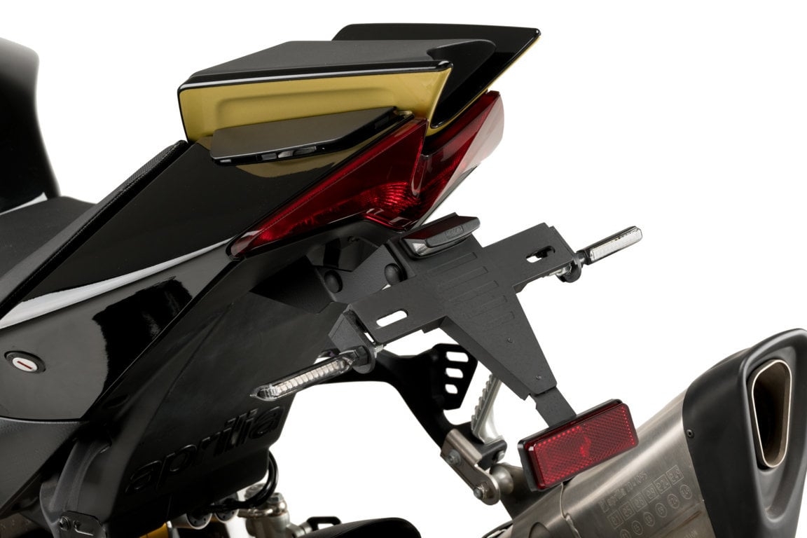 Portamatriculas Puig Aprilia RSV4 Factory 2021-2023. El portamatrícula de moto Puig 21354N Aprilia RSV4 Factory 2021-2023 está realizado en acero muy resistente, con acabados de gran calidad combinado con piezas de Poliamida. Diseñado específicamente para cada modelo de moto, el portamatrícula para moto Puig 21354N Aprilia RSV4 Factory 2021-2023 ofrece un look agresivo además de una excelente relación calidad-precio. La referencia del portamatricula no incluye el alargo del cableado del grupo de iluminación.