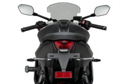 - Incluye kit homologado con luz de matrícula, desplazador y catadióptrico.