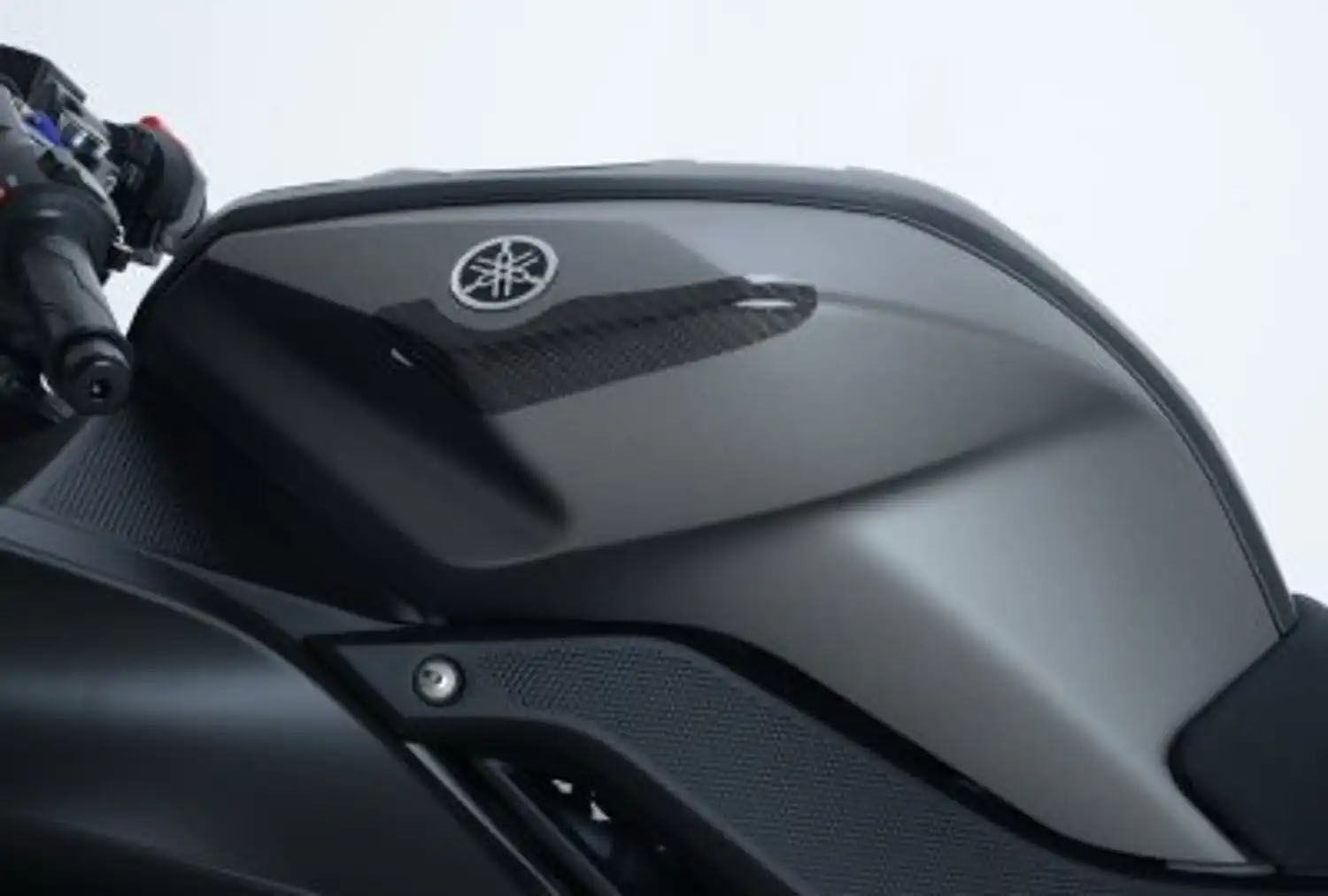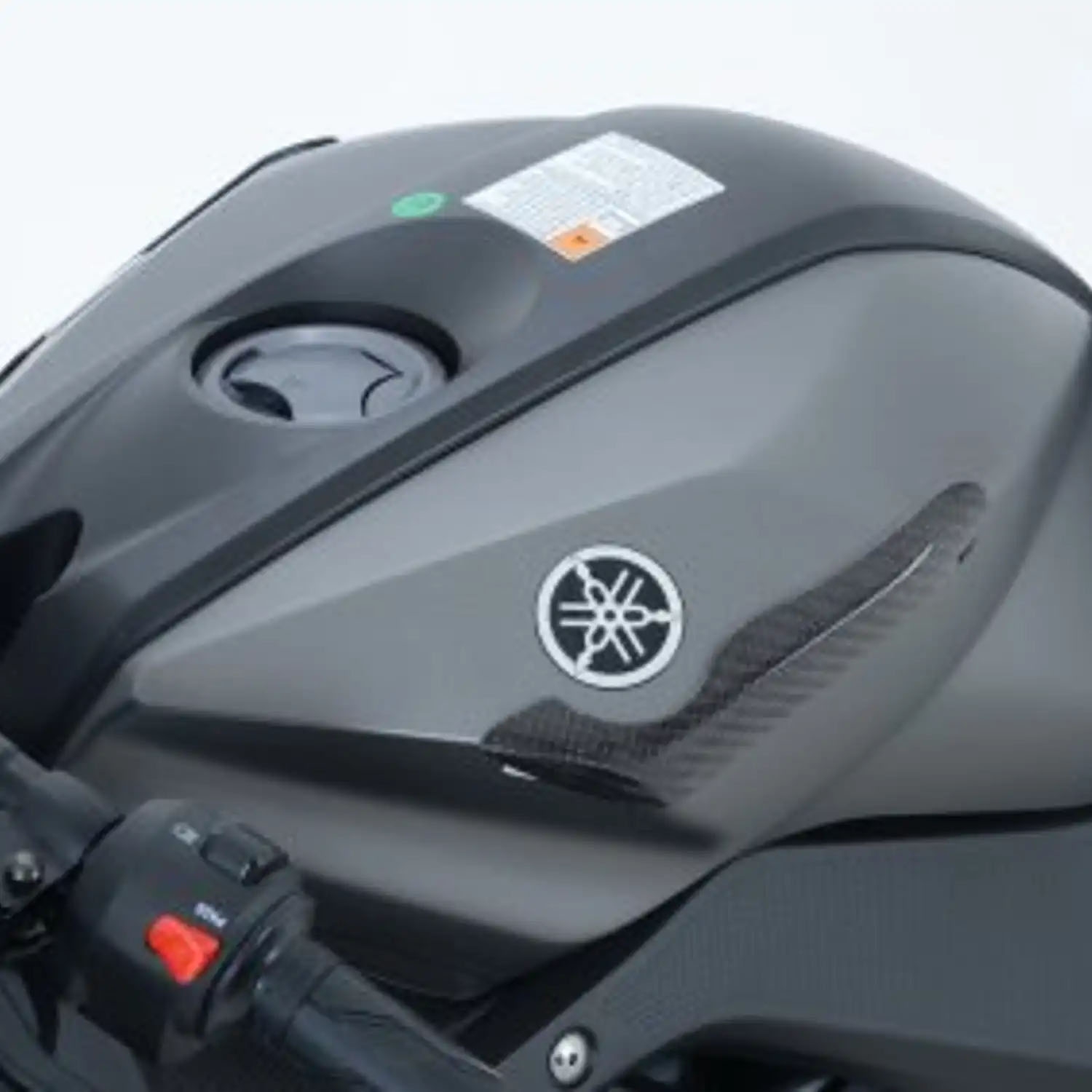 Protector depósito carbono RG Racing Ts0014cg Yamaha YZF 125 R. Los protectores de depósito de carbono RG Racing (Carbon Tank Sliders) son esenciales para cualquier motociclista que busque la mejor protección para su moto, especialmente en las áreas más vulnerables como el depósito de combustible. Fabricados en fibra de carbono reforzada con DuPont™ Kevlar®, estos protectores ofrecen una resistencia y durabilidad excepcionales contra raspaduras o abolladuras en caso de accidentes o caídas. Diseñados específicamente para ajustarse perfectamente a los contornos del depósito, cubren las esquinas más pronunciadas y las áreas que más probablemente sufrirán impactos. Estos protectores no solo son altamente eficaces en proteger tu moto, sino que también son fáciles de aplicar, requiriendo solo unos minutos para su instalación, y están hechos en el Reino Unido.