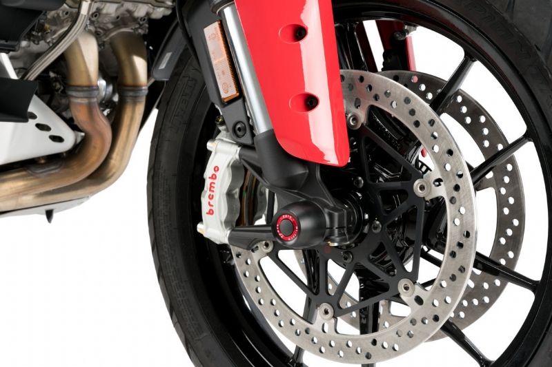 Protector horquilla Puig 20107N (aros no incluidos). Nuevo protector Puig 20107N modelo PHB19, diseñado para proteger la parte delantera de la moto, en especial la horquilla. Fabricado con material de alta calidad para una óptima resistencia y ligereza. Mecanizado a partir de un bloque de nylon, con un peso reducido de 265 gr y 40 mm de largo x 50 mm de diámetro. Posibilidad de adquirir aros anodizados de diversos colores (referencia 20025) para una mejor integración estética con la moto.