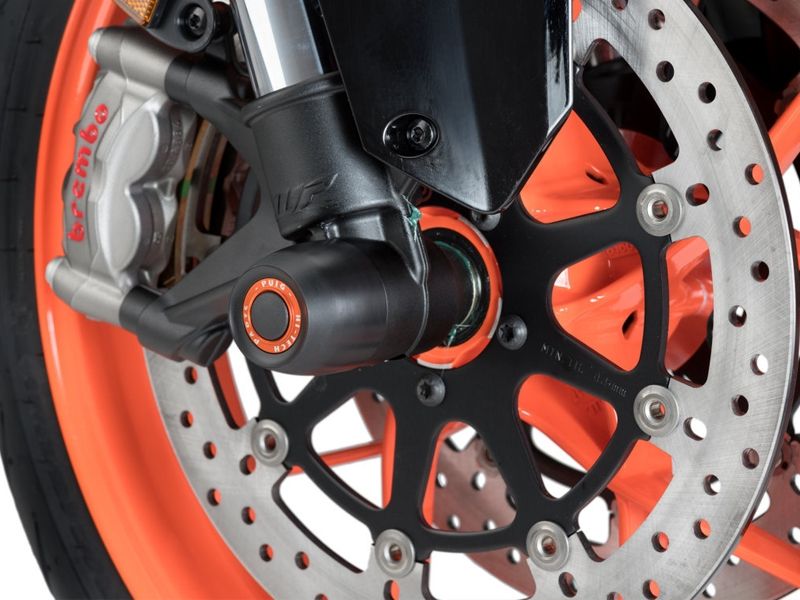 Protector horquilla Puig PHB19 20111N Ktm Super Duke 1290 (aros no incluidos). Nuevo protector Puig 20111N modelo PHB19, diseñado para proteger la parte delantera de la moto en especial la horquilla. Fabricado con material de alta calidad para una óptima resistencia y ligereza. Mecanizado a partir de un bloque de nylon, con un peso reducido de 265 gr y 40 mm de largo x 50 mm de diámetro. Posibilidad de adquirir aros anodizados de diversos colores (referencia 20025) para una mejor integración estética con la moto.
