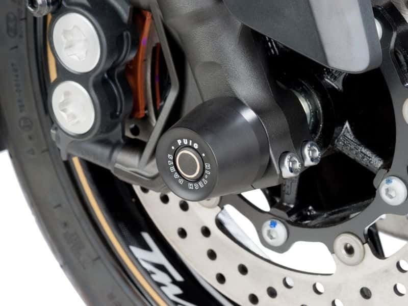 Protector horquilla Puig 8672N. Protector Puig 8672N diseñado para proteger la parte delantera de la moto en especial la horquilla. Su diseño es discreto y de excelente calidad, gracias al proceso de mecanizado CNC a partir de un bloque de nylon muy resistente. Su peso es de tan sólo 265 gramos.