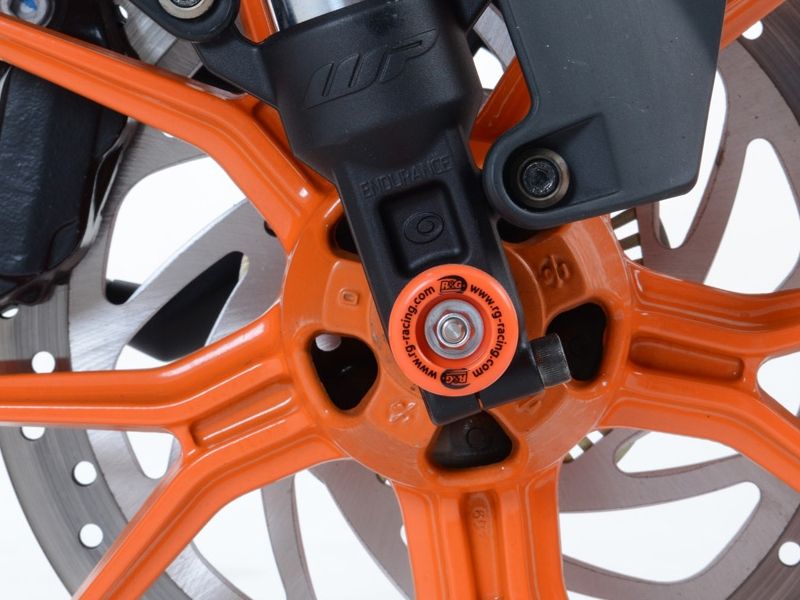 Protector horquilla Rg-racing FP0106OR. El protector de horquilla Rg-racing FP0106OR está diseñado para minimizar los daños de la horquilla, pinzas de freno y tuercas del eje en caso de una caída leve. Fabricados con material altamente resistente a la abrasión. Precio del juego de protectores. Imagen genérica.