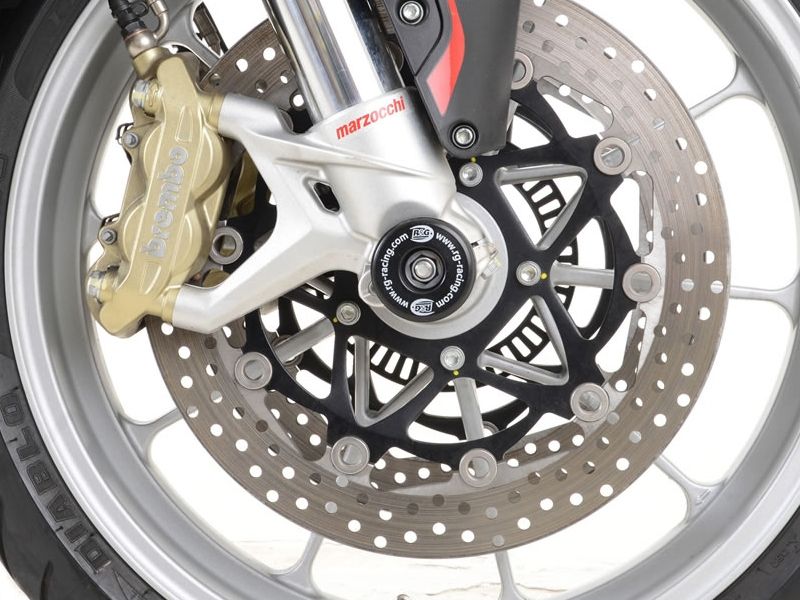 Protector horquilla Rg-racing FP0185BK. El protector de horquilla Rg-racing FP0185BK está diseñado para minimizar los daños de la horquilla, pinzas de freno y tuercas del eje en caso de una caída leve. Fabricados con material altamente resistente a la abrasión. Precio del juego de protectores. Imagen genérica.