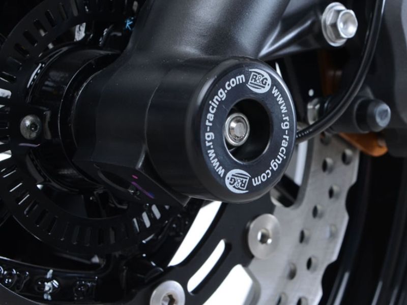 Protector horquilla Rg-racing FP0192BK. El protector de horquilla Rg-racing FP0192BK está diseñado para minimizar los daños de la horquilla, pinzas de freno y tuercas del eje en caso de una caída leve. Fabricados con material altamente resistente a la abrasión. Precio del juego de protectores. Imagen genérica.