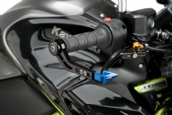 Protector maneta freno Puig 3765A. Nuevo protector para la maneta del freno con diseño universal. Ralizado en aluminio a partir de un bloque macizo y posteriormente mecanizado en CNC, dispone de un ajuste para modificar la distacia mediante unos tornillos. El protector es universal y es necesario combinarlo con el adaptador específico que se vende por separado. Disponible en 7 colores diferentes según la última letra de la referencia; (N) Negro, (A) Azul, (R) Rojo, (T) Naranja, (V) Verde, (P) Plata y (O) Oro. Precio unitario.
