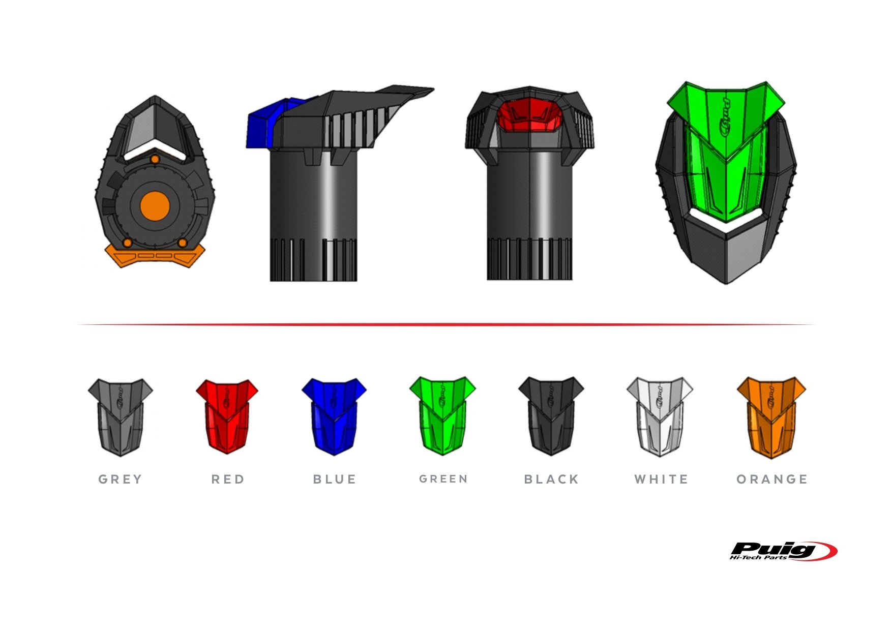 - El diseño de la goma ofrece protección a la rodilla contra posibles golpes al subirte a la motocicleta. Se suministra siempre en color gris por defecto.