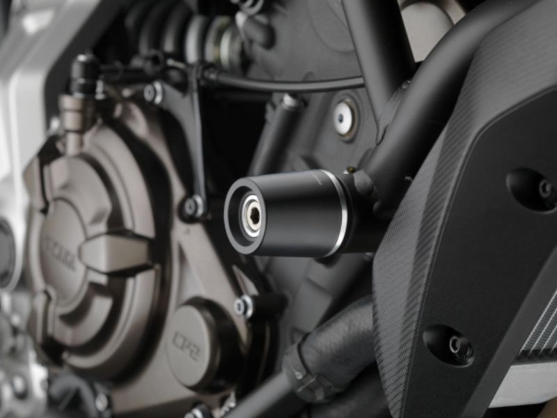 Accesorio fundamental tanto para el uso cotidiano como para el uso deportivo en la pista. Realizadas en aluminio y delrin, protegen las distintas partes de la moto contra las caídas y están diseñadas para no comprometer la ciclistica en caso de esfuerzos externos. La parte de fricción, sustituible, permite una fácil renovación en caso de caída.