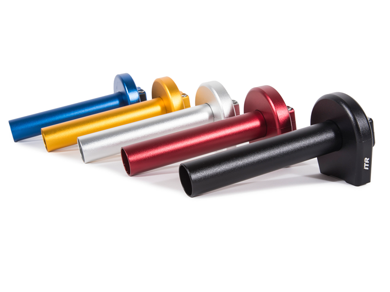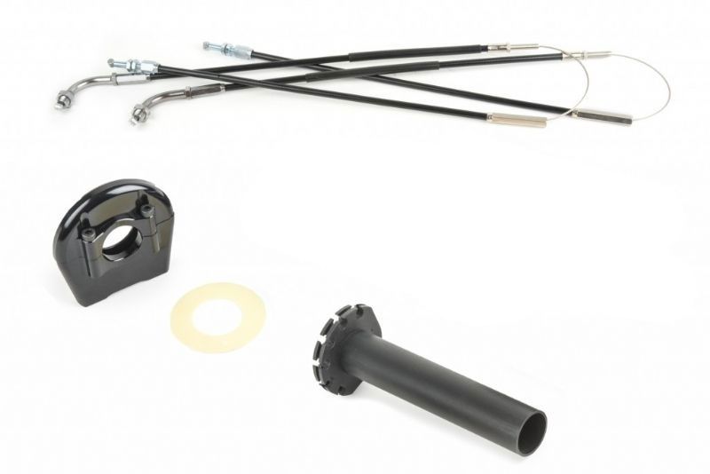Puño de gas ITR IT23001N Negro. Puño de gas ITR standard realizado en aluminio y anodizado en negro. Diseñado para reducir la fricción en el accionamiento del puño de gas y ofrecer un mejor control del acelerador. También mejora el movimiento del cable del acelerador. proporcionando un tacto más suave. El kit incluye 3 coronas de diferentes medidas. Los cables se deben comprar por separado.