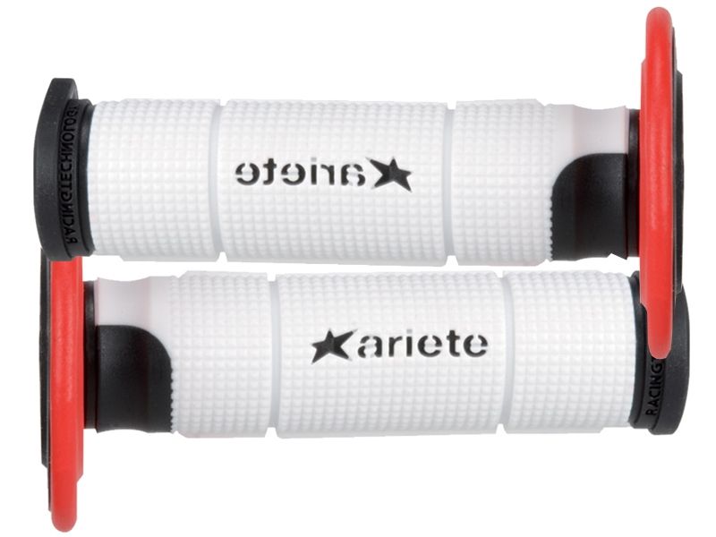 Puños Ariete 02614-BNR Trinity. Nuevos puños de motocross Ariete Trinity 02614-BNR con diseño asimétrico y realizados en 3 compuestos de material para una excelente agarre y óptima durabilidad. El piloto utiliza cada puño de forma diferente, por esa razón el Ariete Trinity es la solución perfecta: 2 puños que se diferencian por la funcionalidad y el confort, cada uno diseñado para garantizar las máximas prestaciones. Sus 3 compuestos diferentes se han ubicado en zonas específicas para optimizar la adherencia y la durabilidad del producto.